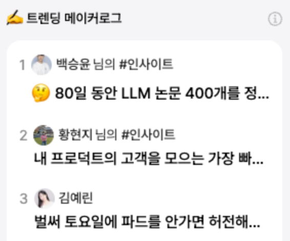 그리고 디스콰이엇을 통해 여러 사람들과 교류하고 나를 알리는 시간을 가졌었다. 코르카가 PMC W23 이라는 클럽(?)에 도움을 주는 역할을 맡게 되서 한번 네트워킹 세션을 갔었다. 많은 분들이 LLM이나 AI를 본인들의 창업 아이디어에 어떻게 적용할 수 있을지 궁금해했는데 그런 분들과 소통하며 내가 조금이나마 도움을 줄 수 있었던 것 같아서 뿌듯했다. 한번은 디스콰이엇에 글을 올려서 실시간 1위 글도 했었다 ☺️