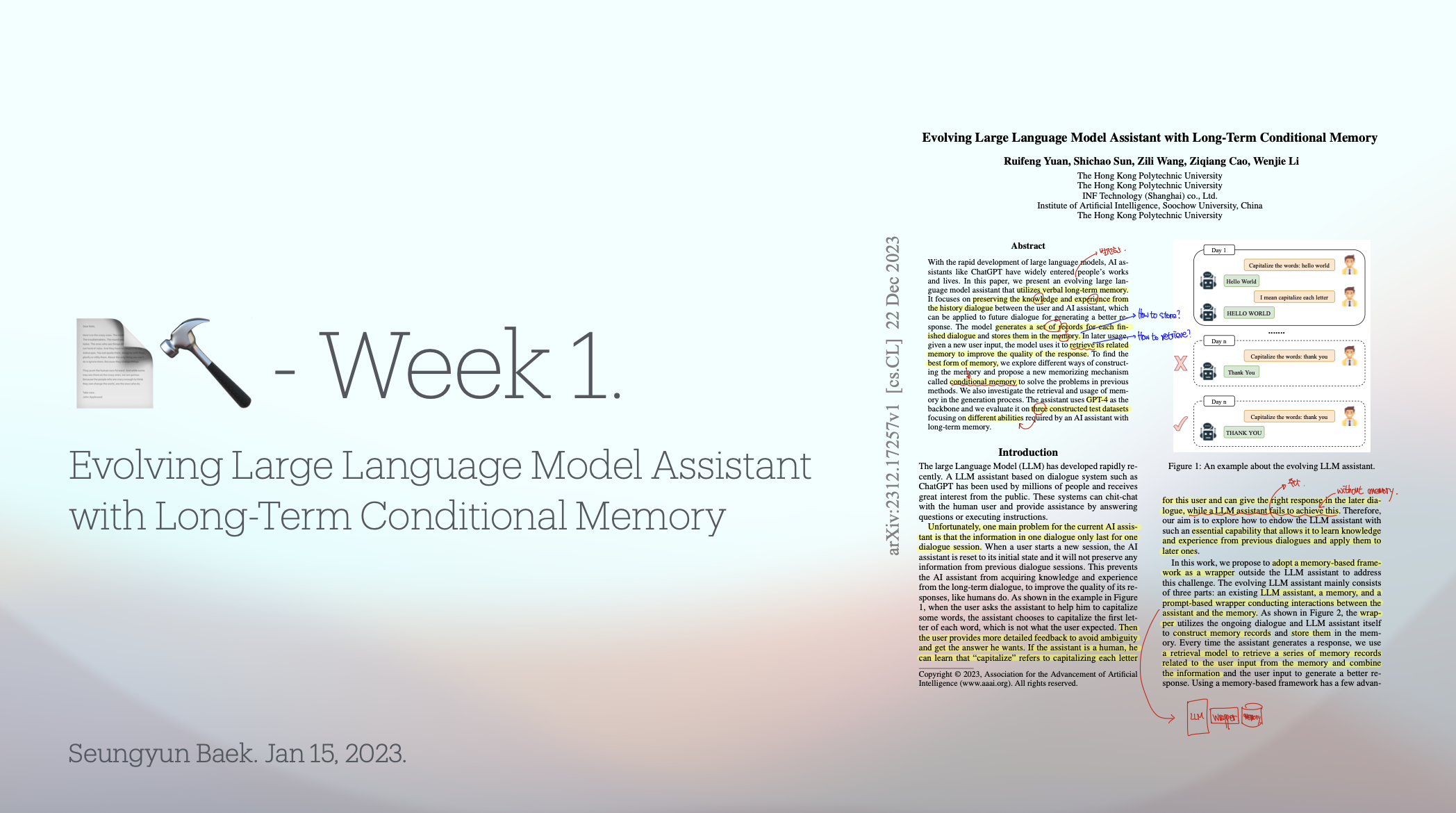 더 좋은 프로덕트를 개발하기 위해서 LLM 기술을 더 깊게 이해하는 우리가 되자는 취지로 <매주 논문 뿌시기> 세미나를 시작하였다. 매주 하나의 논문을 정해서 그 논문을 완전히 이해하고 우리 프로덕트에 어떻게 적용할 수 있을지 한단계 더 깊은 생각을 하는 것이 목표다. 일정이 바빠서 1월에 2번 정도밖에 하지 못했는데 2월에도 격주로 진행하게 될 것 같다.